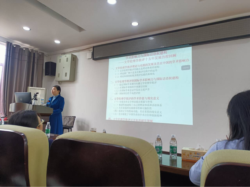 其次,苏教授不仅分享了文学伦理学批判理论研究译成不同的语言的书籍,且介绍了伦理选择代表性成果、文学伦理学批判关于伦理选择理论的特点、价值和意义,还就关于伦理智慧与伦理选择之关系的思考,构建以伦理选择为中心的文学伦理学批判理论和话语体系做出了详细的讲解。