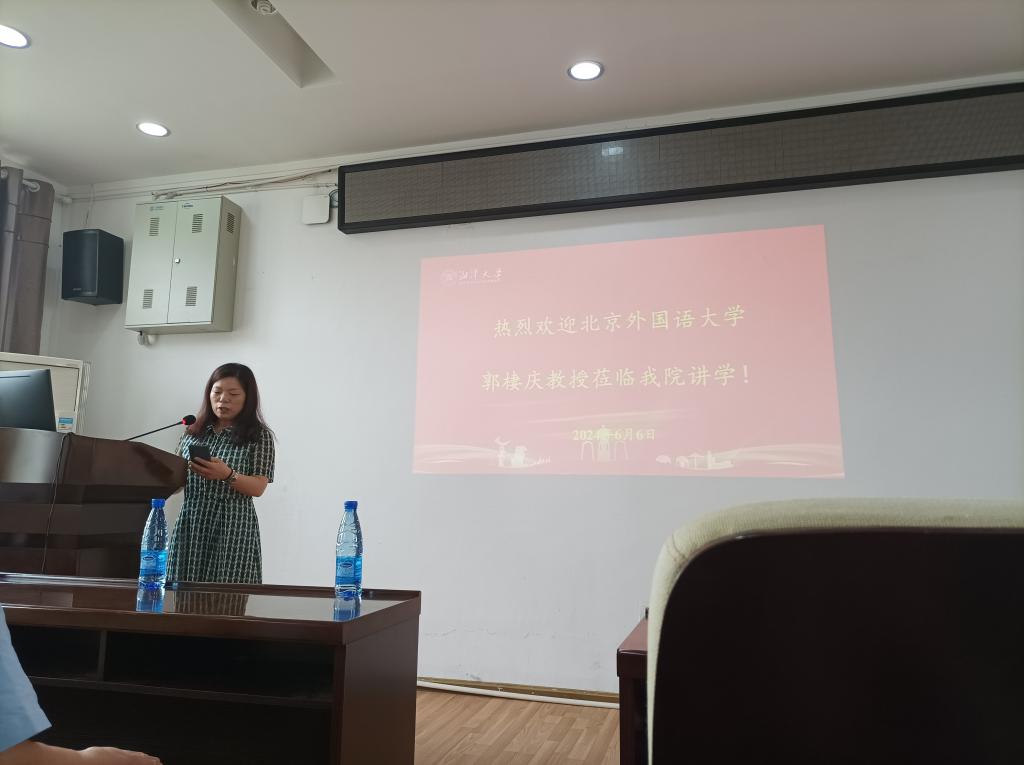 讲座伊始,郭教授表达了对湘潭大学的喜爱,鼓励同学们努力学习,也介绍了自己从事美国文学研究的来由。