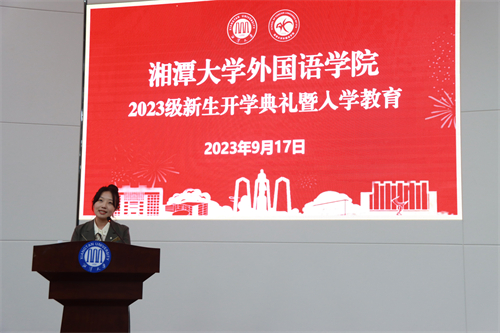 入学教育环节,新生们首先观看了一段湘潭大学英语专业1979级毕业生、新航道国际教育集团创始人、中国国创会中国故事研究院院长、全国国际中文教育专业学位研究生教育指导委员会委员胡敏的演讲,他从五个方面告诉大家在瞬息万变的时代如何才能不迷茫:“第一,明确目标,航向未来;第二,学会沟通和领导两种能力,拥抱不确定的未来;第三,用“英语”学习,而不是“学习”英语;第四,运动释放快乐多巴胺,对抗焦虑;第五,拒绝拖延症,在快节奏时代高效前行。”