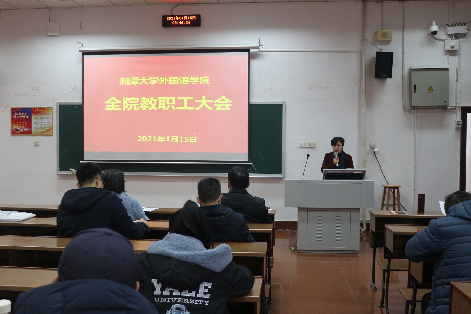 院党委副书记陈娟就《2020年yd222云顶线路检测网站财务工作报告》做了详细的说明,副院长杨维春就学院教学工作进行了通报,布置了寒假的教学准备工作。院长胡强作了《只有胜利才能带来胜利》的期末总结,提请全体教师审议表决《2020年yd222云顶线路检测网站绩效工资分配实施方案》,并以93%的赞成率通过。