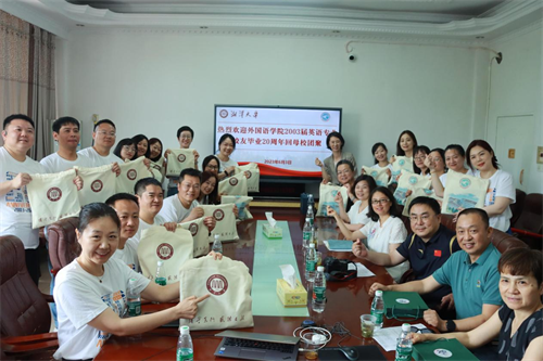 座谈会上,2003届校友精心准备了毕业二十周年纪念视频,视频中记录四年同窗情,也记录了毕业后对母校和老师们的思念、祝福。随后,校友们依次发言并分享毕业后的发展情况。校友代表杨湘鄂表示自己在新加坡创业经历时,一直秉持着湘大人“吃得苦,霸得蛮”的奋斗精神,并强调“一入三拱门,终生湘大人”,校友一直与湘大同在。最后,2003届校友赠予“师恩重如山”的牌匾,表达了对学校和学院培养的感激之情。