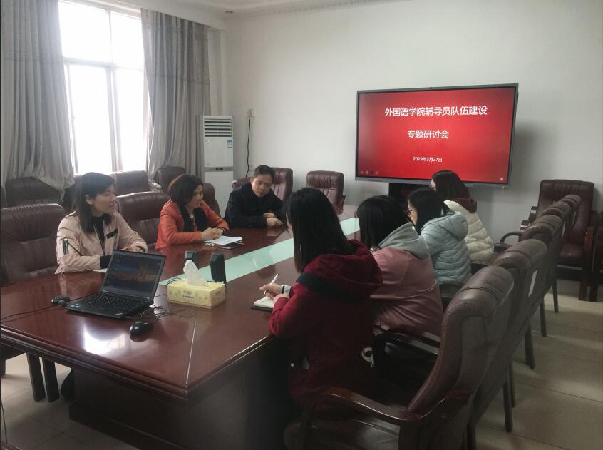 2019年3月27日,学院在外语楼216召开辅导员队伍建设专题研讨会,院党委书记罗益花、党委副书记陈娟,我院全体本科生、研究生辅导员参加。