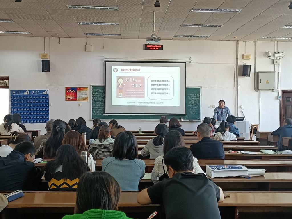 李锋从新时代好老师的标准、师德师风是第一标准及以案明理、以案释规等三个方面进行了深入讲解。他强调了新时代教育工作和教师工作的极端重要性,阐释了新时代“四有”“四个引路人”和“四个相统一”的好教师标准。他指出,作为高校教师,要坚持以习近平新时代中国特色社会主义思想为指导,把师德师风作为第一标准,严格遵守新时代高校教师职业行为十项准则,坚守底线,绝不触碰高校教师师德七条“红线”。他结合师德师风典型案例引导广大教师以案为鉴,结合师德违规问题、对照新时代教师职业行为十项准则,强调课堂教学、关爱学生、师生关系、学术研究、社会活动等方面的正面规范和负面清单,引导广大教师以案明纪,知准则、守底线。